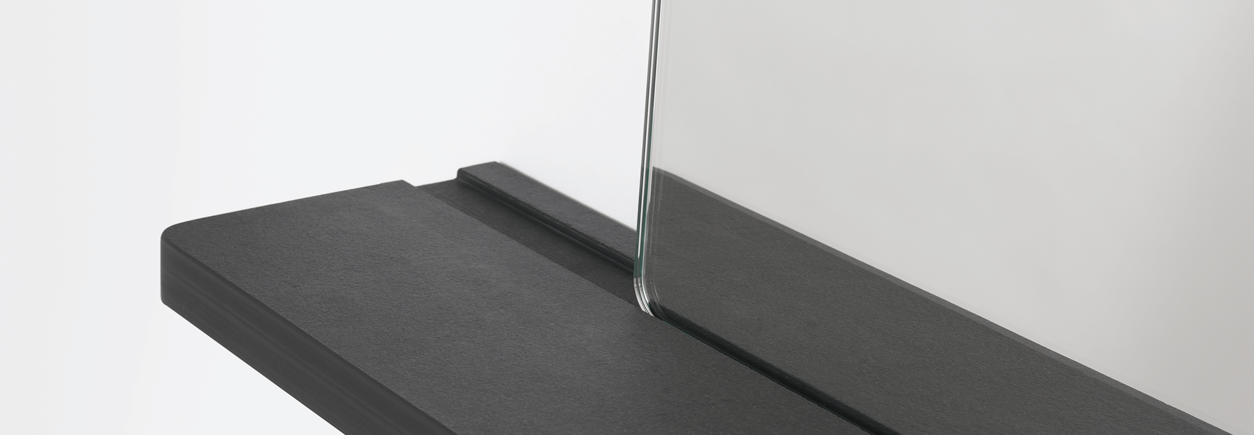 Material: mirror glass with chamfered edges | natural stone (slate) black
